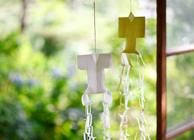他の七夕飾りと一緒に笹竹にさげるなどしてしつらう。