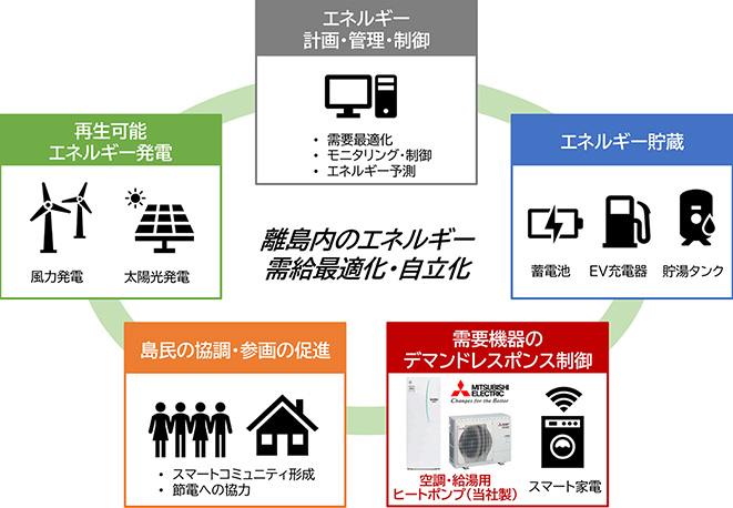 欧州の離島におけるエネルギー自立化の実証プロジェクト「REACT」に、三菱電機の欧州現地法人である「三菱電機欧州R&Dセンター」が参画。アイルランドのアラン諸島にヒートポンプをデマンドレスポンス(電力の供給量に合わせて需要量を最適化する手法)で制御するシステムを構築し、託児施設などの公共施設と住宅に合計6台の給湯・暖房用ヒートポンプを設置。再生可能エネルギーを活用した発電と、デマンドレスポンスによるエネルギー貯蓄や使用電力量の制御によって、導入前と比較して10%の省エネ、60%の温室効果ガスの削減、50%の再生可能エネルギーの利用率向上を目指しました。