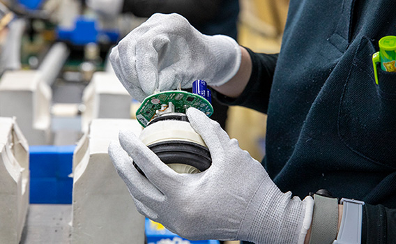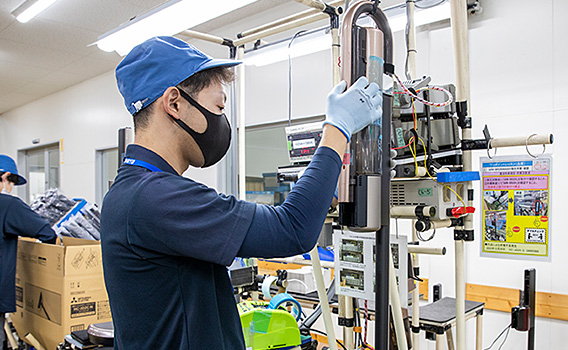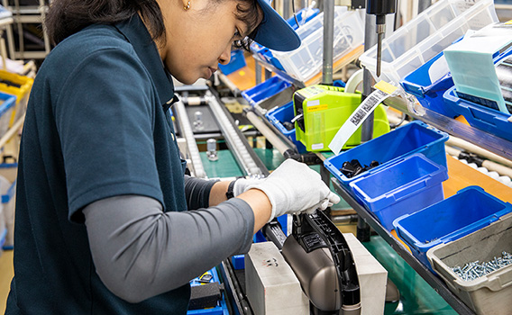 そして、こちらで集塵部のボックス組み立てを行っています。これと本体部分を組み合わせたら、外観や着脱、充電などの検査を行い、動作に問題がないかを一つずつ丁寧にチェックします。