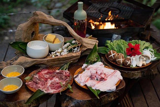 自然の中で味わう、「Treeful Treehouse Sustainable Resort」オリジナルの炭火ディナーも魅力的。やんばるの森の真ん中で生命の恵みを感じ、川のせせらぎや蛍の光に包まれながら、忘れられない非日常の時間をゆっくりと味わってみてはいかがでしょうか。