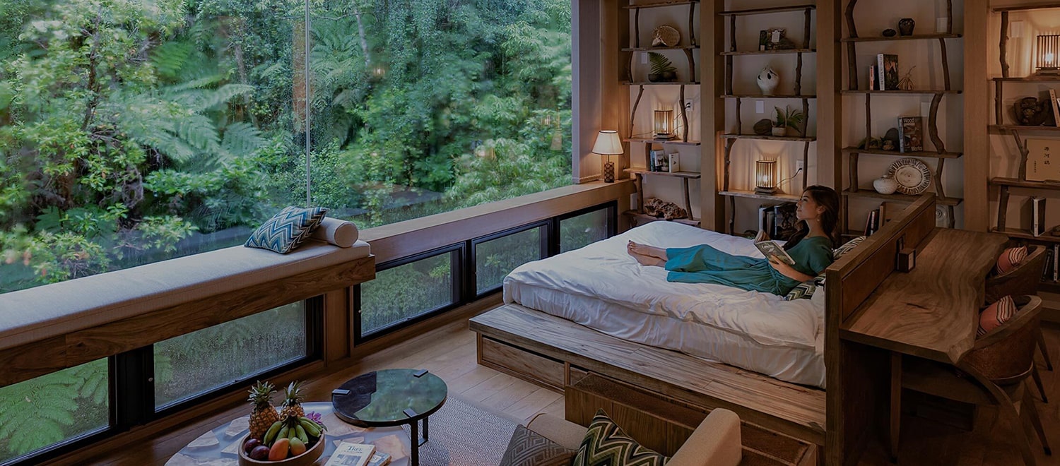 ツリーハウスは、一歩室内に入ればエアコンなど快適な環境と洗練されたインテリアに包まれたスタイリッシュな空間で、ここが木の上とは思えないラグジュアリーリゾートの趣が漂います。また、木の上で心身が“整う”サウナツリーハウスや、トレッキング、水陸両用車でのアドベンチャーツアーなど、多彩なアクティビティも楽しめます。