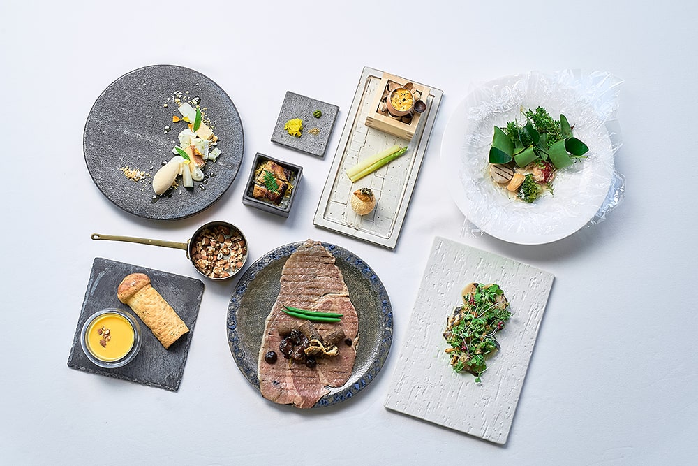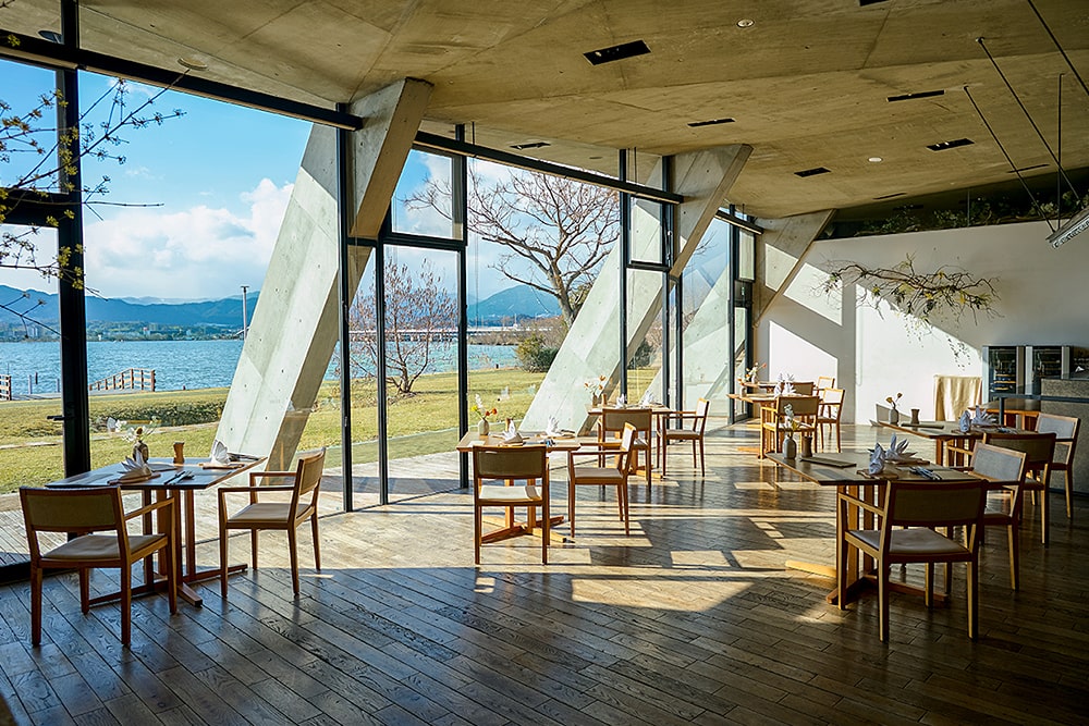 レストランで味わう地産地消を大切にした料理も、旅のハイライトのひとつ。滋賀の自然のなかで育まれた野菜や琵琶湖の湖魚、近江牛など、この地域の旬の恵みを生かした創造性豊かなイタリアンコースを美しい琵琶湖の風景とともに堪能できます。食事とともに供される地酒や和紅茶は、信楽焼の器でのおもてなし。地元の伝統工芸に触れ、口に運ぶひとときは、美食をさらに彩ります。