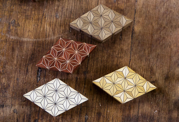 伝統的な六角形の幾何学文様です。それこそ朝から始めて夕方まで……。もう飽きるほどに延々と作りましたよ(笑)。でもそうして繰り返すことで、寄木の模様をいかにリズムよく綺麗に作れるか、カラダに染みこませられたと思います。