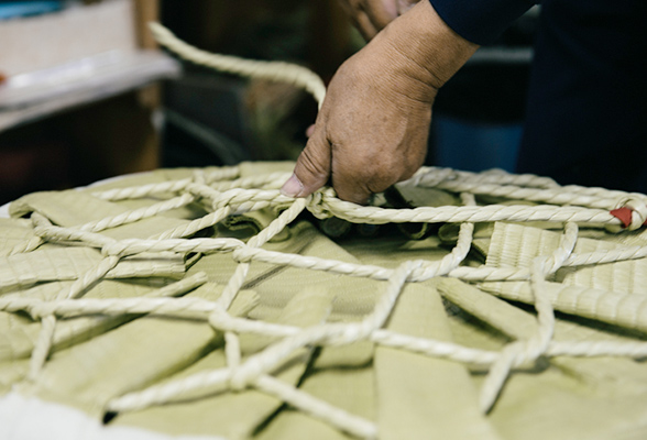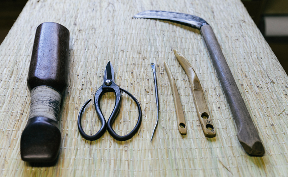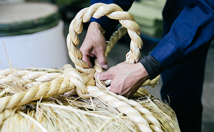 「巻きの手順は少々複雑です。菰に縄を通すための『針』、菰を叩いてなじませる『たたき』、縄を切る『鎌』——主にこれら3つの道具を使いながら、1つひとつの工程を手作業で行っていきます」(横谷さん)