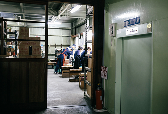 通常、わらで織られる「菰づくり」と、荷造りの際に使用する「立縄づくり」はパートナー会社の工房で行われ、同社工房では「転写紙の印刷」「菰への熱転写」と「荷造り」のパートを担います。
