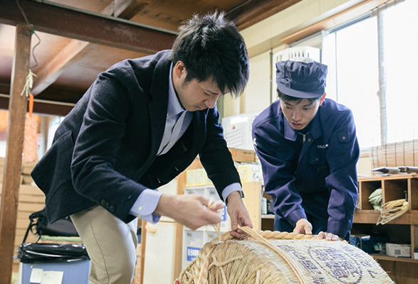 同社の従業員数は約30名。菰樽づくりの工程はいくつかのパートに分かれますが、社員はワンチームで作業を行い、そのなかでは若手職人も活躍中です。