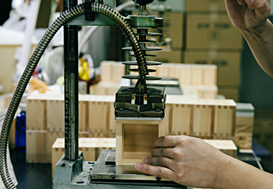 このほか工房では、鏡開きの際に使われる枡への刻印や、豆樽等のオリジナル商品の製造を行っています。