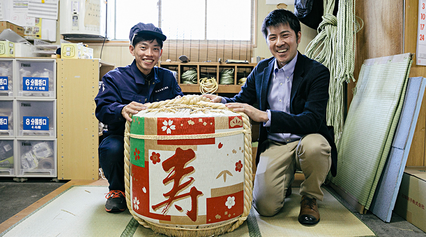 同社のはじまりは明治初期。後の創業者・岸本吉二氏の父・吉太郎氏が菰縄の仲介を行い、その意思を受けた吉二氏が1900年に同社を創業しました。戦時中は一時、菰樽製造が中止されたこともありましたが、1949年に製造を再開。現在は岸本敏裕氏が社長を務めます。