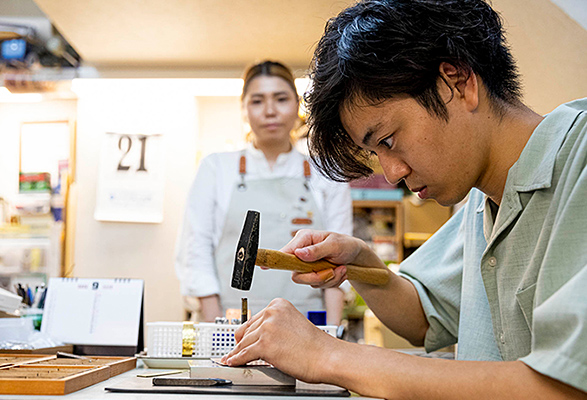 祖父も父も、国が認定する「伝統工芸士」ですが、私も認定試験に合格して後に続きたいです。そのためにも、技術の習得がなにより優先。私の場合、師匠に当たる人が家族なので、ある程度の自由がありました。自分の好きなアクセサリー作りから始めて、仏具の制作に必要な技術も自然と身に付いていった感じです。若手職人だとおそらく5年ぐらい製品づくりに関われない工房も少なくない中、恵まれていました。私のような存在が広く知られることで、若い人が職人を目指しやすい環境が生まれ、担い手不足の解消につながってほしい。そう願っています。