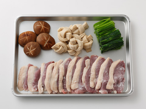 【火力6】にしてひと煮立ちさせ、鴨肉を1枚ずつ入れて【火力4】にし、1~2分煮て取り出す。 -