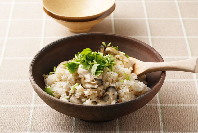 さっくりと混ぜ合わせ、かきをのせて10分ほど蒸らす。 -