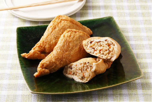 「いただき」は、貴重な米を一粒も無駄にすることがないように油揚げに詰め、炊き上げたもの。