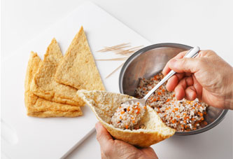 斜めに切り、袋状に開く。 -