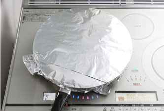 火を止め、裏返してアルミホイルで蓋をし、10分ほど蒸らす。