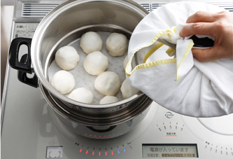 ※生地が乾くと包みにくくなるので、生地にはぬれ布巾をかけておきましょう。 -
