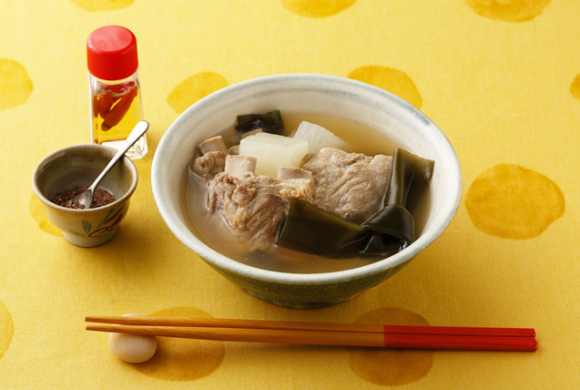 それほどまでにじっくり煮込んだスープは、豚肉と昆布とかつお節の旨みが溶け合って滋味深く、まさにヌチグスイ(命の薬)です。
