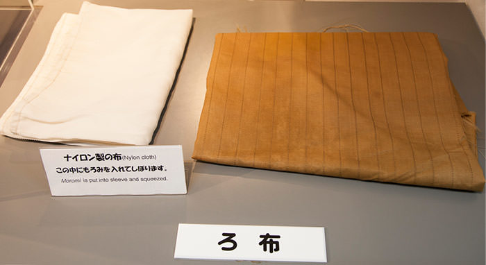 圧巻だったのは、最後の仕上げ、もろみを搾るところ。いわゆる圧搾です。この工程では、熟成したもろみを三つ折りの長い布に包み、折り重ねて、最初はもろみの重さで自然にしょうゆがにじみ出るのを待つそうです。