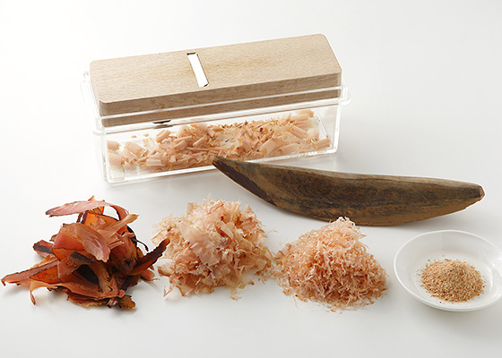 かつお節は削ってから使いますが、削り方によって用途が異なります。厚削りはじっくり煮出して深みのあるだしをとり、麺つゆや濃いめの味の煮物などに利用します。厚さ0.2mm以下の花びら状に大きく削った薄削りは短時間で旨みと香りのバランスのよいだしがとれ、お吸い物などに最適です。糸状やごく薄く小さく削ったものは、料理のトッピングにして食べるかつお節。粉末状の粉ぶしは、お好み焼き生地や葉野菜のお浸しに混ぜ込んで使います。