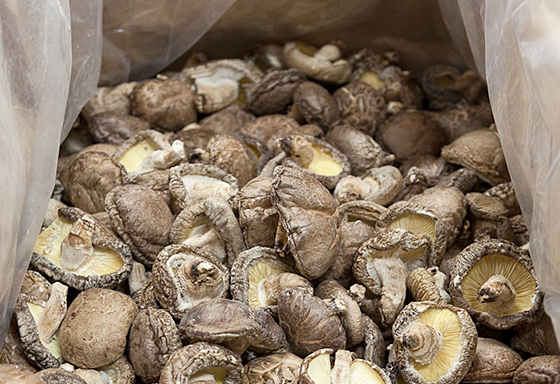 - いま海外展開にも力を入れていて、現在、東南アジアやアメリカなど13の国や地域に輸出しています。干ししいたけは「和」を象徴する食材のひとつでもありますし、中華街のある国での人気も高いですね。大分産の干ししいたけの品質も評価されて、最近では新たな国からの引き合いが増えてきました。レシピも世界的に展開され始めていて、干ししいたけは今後われわれには思いもよらぬ国で想像もしなかった料理へと使われていくようになるのかもしれません。