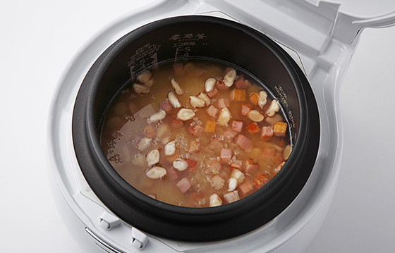 【白米・炊き込み】で炊く。