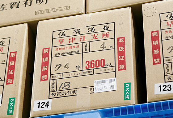 軍艦巻きや細巻き、太巻きなど多種多様な海苔を扱うすし店や、たくさんのおにぎりを扱うスーパーからの要望に応じて、焼きからカットまで「一点もの」の要望にも応えます。すし店によってはカットの向きまで指定されることもあるのだそう。細か過ぎると思えるほどの希望にもピタリと応える。丸山海苔店の工場には、そんなプロの仕事がありました。