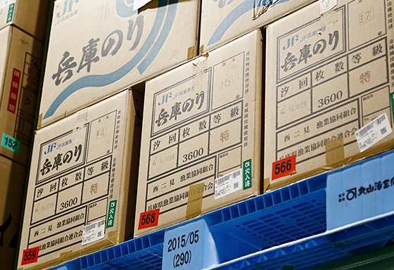 現在、丸山海苔店の一大生産拠点となっているのは茨城県のつくば工場。ここに北は宮城県石巻から、南は鹿児島まで全国から海苔が集まります。その数、なんと年間数千万枚(!)。その海苔を状態や品質に合わせて一枚一枚、ていねいに焼いていく。それが海苔屋の仕事なのです。