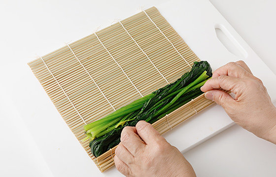 巻きすに海苔を置いてほうれん草1組を置き、端から巻く。