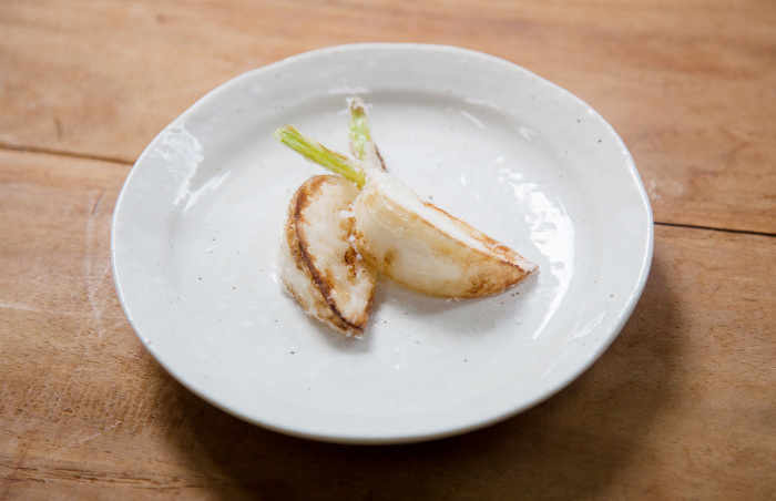 - かぶ、おいしくて本当に大好きなんです。はちきれんばかりに張った皮のなかにキメの細かい身が詰まっていて、口にすると甘みと淡い辛み……。あんなにやさしい野菜はそうそうないですよ。