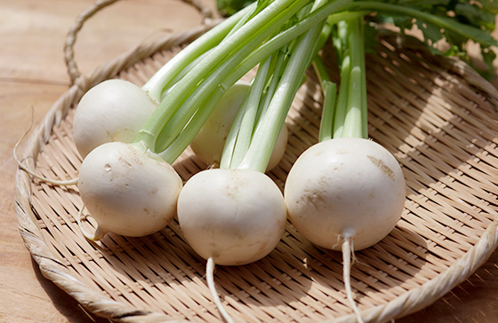 葉つきのかぶは、みずみずしい実野菜とビタミン豊富な葉野菜が一緒になったおトクな野菜。独特の辛みがある葉も、味の濃い葉のつけ根も、無駄なく調理しましょう。