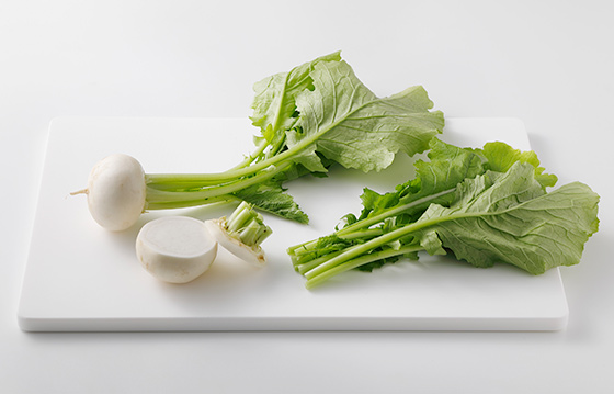 かぶは実と葉のつけ根、葉に切り分ける。