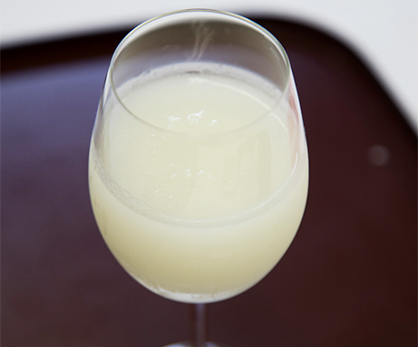 - そうです。ミキサーに基本の大根おろしと氷、炭酸水を入れ、その合計量の36%の上白糖を加えてミキサーにかけるんです。それだけで驚くほどおいしい大根ジュースができあがります!