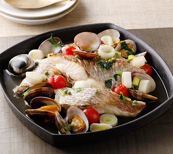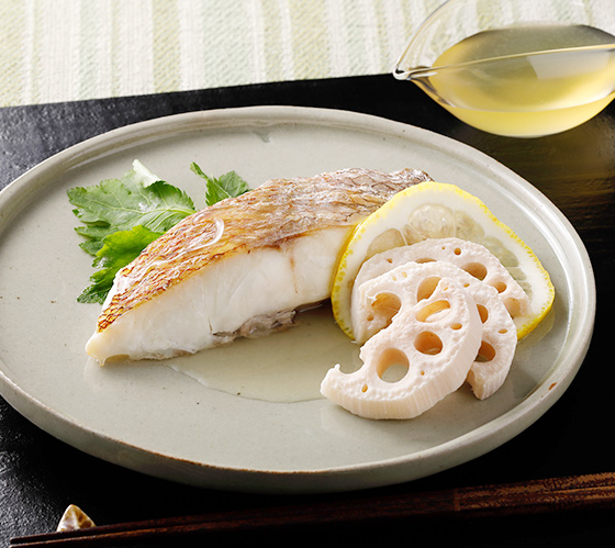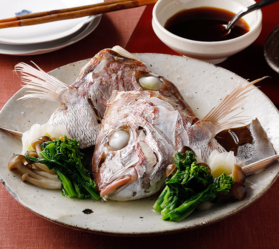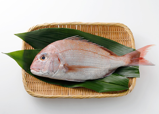「タイ」と名の付く魚は少なくありませんが、真鯛は「本鯛(ほんだい)」の別名が示すように正真正銘のタイの王様。天然物の旬は脂がのる晩秋から産卵前の春にかけてですが、養殖物も多いため、一年中、店頭に並びます。クセのない淡白な味わいと独特の香り、上品なうま味が特徴の身だけでなく、頭や中落ち、うろこまで、余すことなく食べることができます。