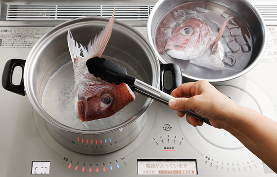 調理方法がシンプルなだけに、鯛の頭の下ごしらえが料理の仕上がりを大きく左右します。