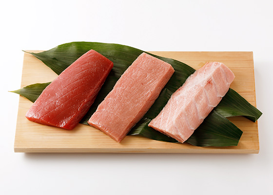 左から赤身、中トロ、大トロ(いずれもクロマグロ)