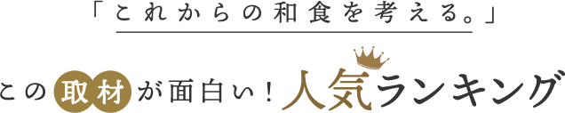 食の多様化に伴い、和食を食べる機会が減ってしまったり、伝統的な食材が失われつつある中、