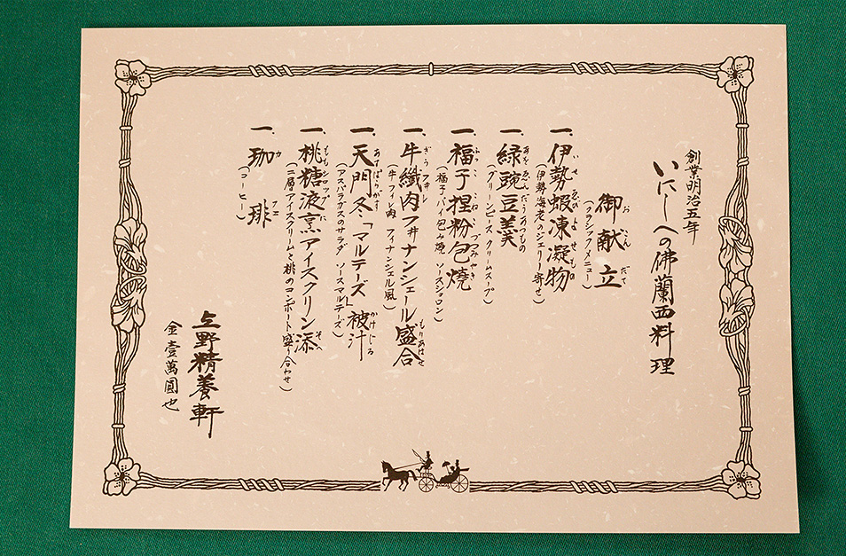 当時の豪華なメニューを再現したもの