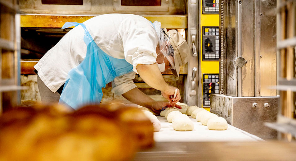 パンは職人の手でひとつひとつていねいに仕上げられる