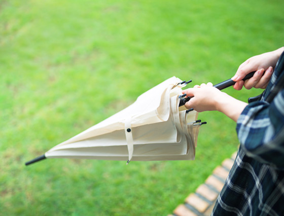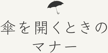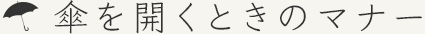 傘を開くときは、まず周囲を確認してから、傘先を斜め下に向けてそっと開くようにしましょう。