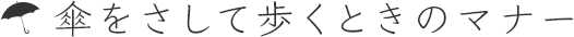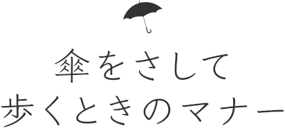 傘をさしたまま人とすれ違うときに意識したいのが「傘かしげ」。傘先を少し相手とは反対側に傾ければ、相手に露先をぶつけたり水滴をかけたりしてしまうことを防げます。