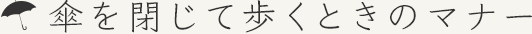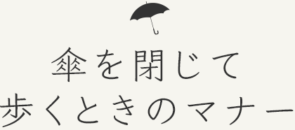 傘を閉じて歩くときは柄をつかみ、傘先を下にして、自分の体の近くに固定して持ち歩くのが、マナー的にも安全面においても正しいのです。