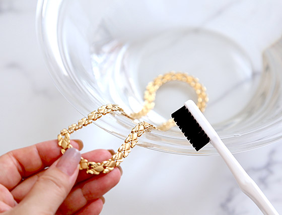 お水に中性洗剤を薄く溶かし、アクセサリーを5分ほど浸します。