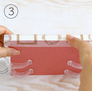 テープののりがしっかりと年賀状に貼りつくように指でしっかり押さえます。