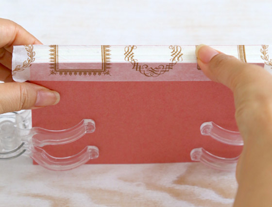 次にはがきを回転させて背表紙側にマスキングテープを貼ります。