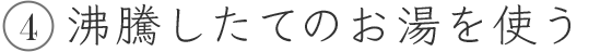 水から強火で沸かし、大きな泡がはじけ出したら丁度いい温度になった証拠です。