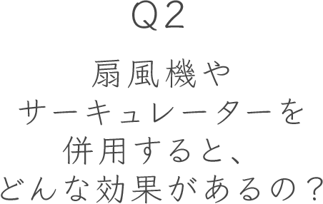エアコンは近いところから冷えていきます。また、冷たい空気はお部屋の下の方にたまります。この「冷気ムラ」を解消するのに役立つのが、扇風機またはサーキュレーターとの併用です。