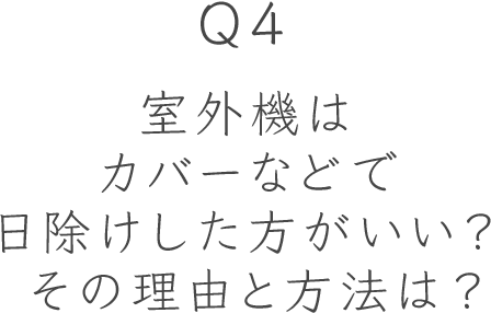 もし直射日光があたる場所に設置されている場合は、室外機カバーなどで日射から守り、室外機周りの吸い込み空気の温度を下げてあげましょう。三菱電機では専用の日除けを用意していますので、そちらも検討してみてください。