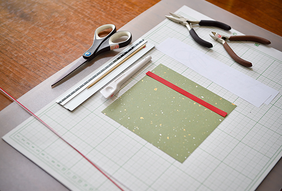 一つひとつの折り目をずらさないようにするために、定規を当てながら折り、さらにへらを押し当ててしっかりと折り目をつけます。こうしたひと手間があってこそ、美しいポチ袋は形になります。