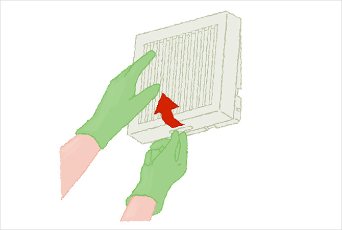 換気扇のスイッチをオフにして、ファンが完全に停止したことを確認します。換気扇のカバーを取り外し、ホコリを掃除機で吸いましょう。こびりついてとれないホコリは歯ブラシでこすって落とします。ホコリを取り除いたら、換気扇のカバーにフィルターシールを貼り付けておきましょう。