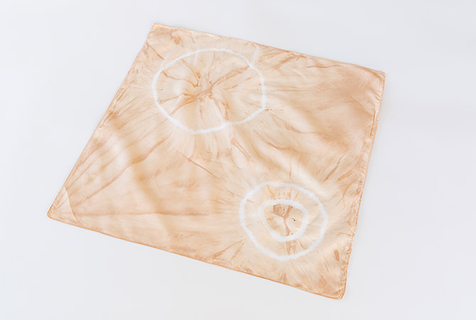 完成品がこちらです。煮出したり干したりと、手間暇かけて作った草木染のアイテムは、ずっと大切にしたくなるはず。フードロス削減にも貢献できる野菜を使った草木染を、ご家庭でも楽しんでみてはいかがでしょうか。