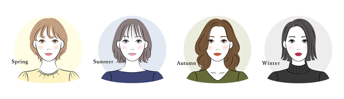 | 夏タイプ | 日本人で最も多いのが夏タイプ。自然な黒髪にグレーの瞳、肌は薄いピンク寄りで頬に赤みが出やすいのが特徴です。ネイビーや純白などを取り入れたコーディネートがよく似合います。 |